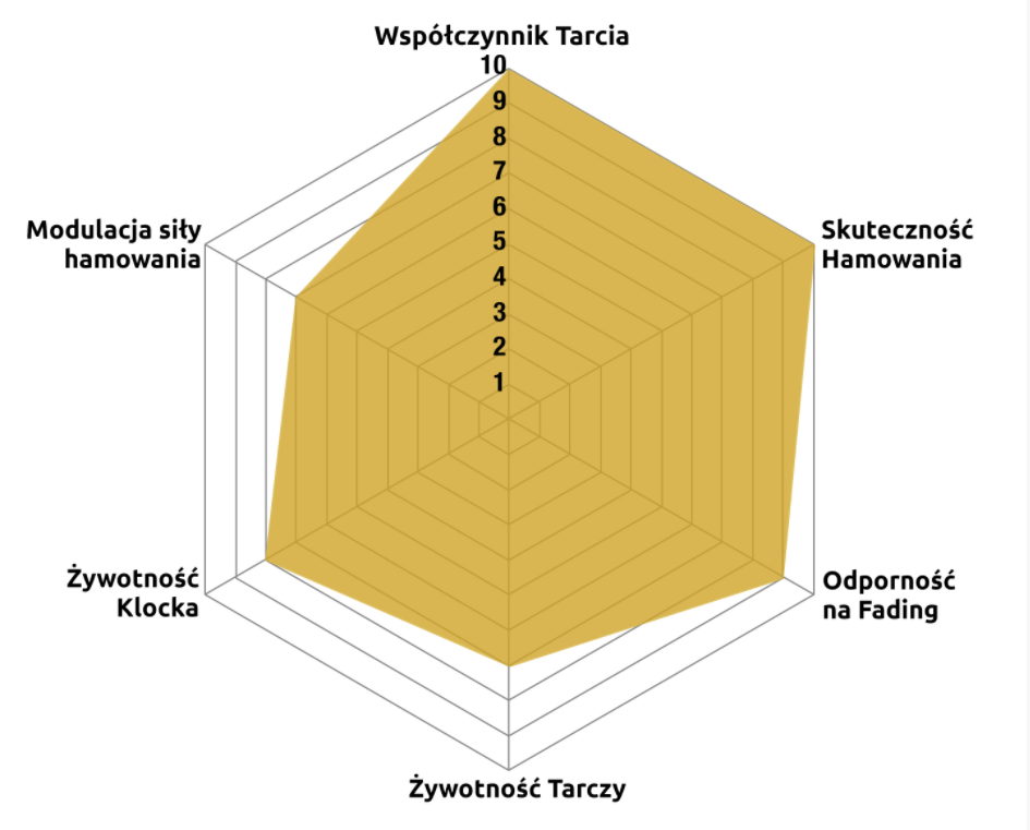 Zużycie klocków RP-X jest większe niż w przypadku innych klocków hamulcowych np. w porównaniu z klockami EBC RP-1 Racing, co powoduje wysoki poziom pylenia. W porównaniu do klocków RP-1, KLOCKI RP-X mają wzrost o 25% współczynnika tarcia w całym zakresie temperatur roboczych przy znacznie mniejszym nacisku na pedał hamulca. Fakt ten sprawia, że sprawia, iż RP-X jest agresywniejszy klockiem w początkowej fazie hamowania.