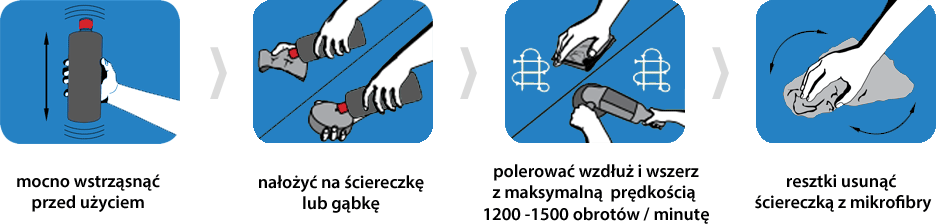 Można stosować ją zarówno ręcznie jak i maszynowo. Do stosowania zarówno z polerką rotacyjną, orbitalną, lub ręcznym padem polerskim.